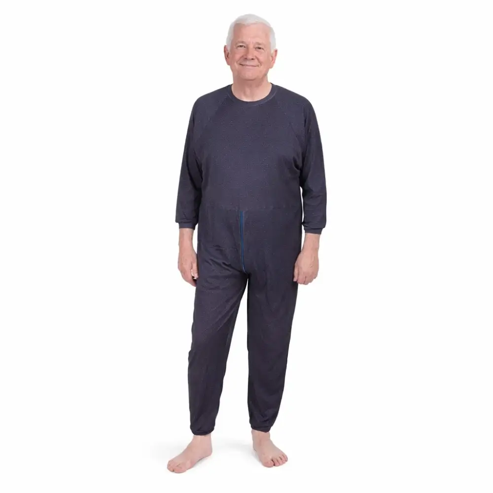 - Grenouillère homme incontinence, évitant les déshabillages intempestifs.